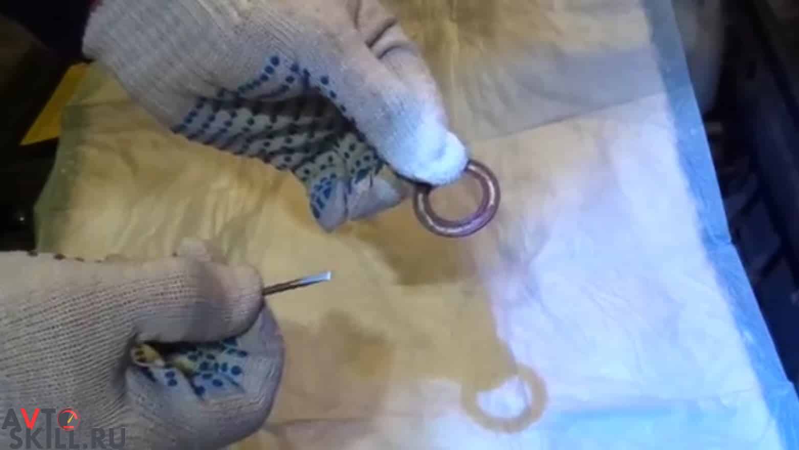 Поддеваем и снимаем кольцо. После снятия кольца нужно выпрямить.