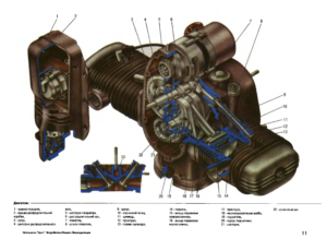 | Тип двигателя | 4-тактный, верхнеклапанный, оппозитный, двухцилиндровый |
