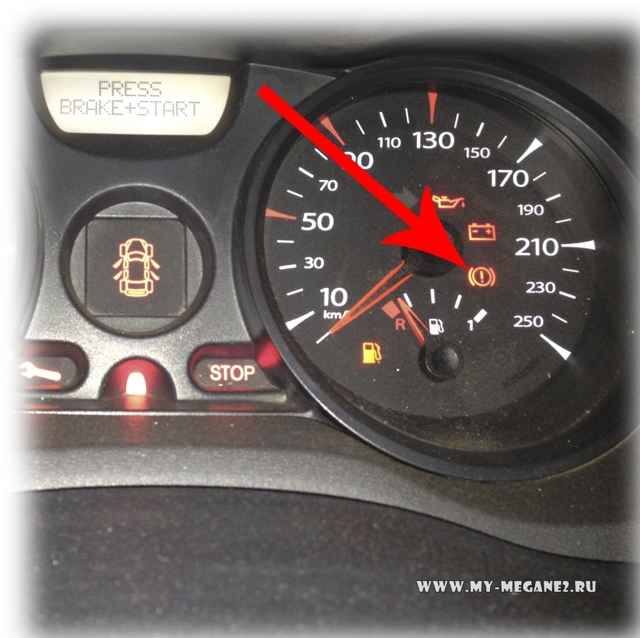2. Нажимаем на кнопку START/STOP. На щитке приборов должна на 2 секунды загореться и погаснуть контрольная лампа включения стояночного тормоза и неисправности тормозной системы.