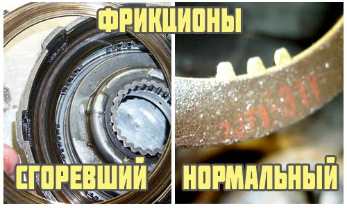 Диски фрикционов начинают пробуксовывать относительно друг друга, а это приводит к их сгоранию и повышенному износу.