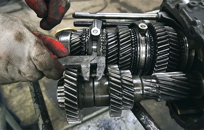 - Шум, посторонние звуки около узла. Если они возникают в состоянии полностью выжатого сцепления, причину необходимо искать в подшипниках. Шум во время движения указывает на поломки шестеренок. Износ первичного и вторичного вала или его шестеренок — причина посторонних звуков во время движения на четвертой передаче. Независимо от режима трансмиссия шумит при отсутствии масла.