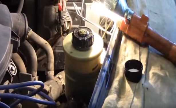 11. Закройте крышку бака и запустите двигатель. Делаем полные повороты на руле вправо и влево.