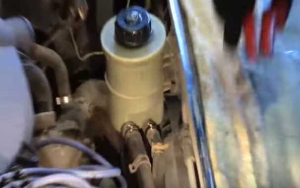 10. Делаем полные обороты на руле в одну и в другую сторону при выключенном двигателе. В бачке будет булькать и жидкость уйдет.