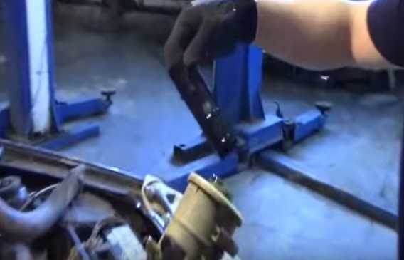 Работая под днищем автомобиля, не забывайте о технике безопасности. Для этого обязательно используйте средство защиты от отката или другие подручные средства, предотвращающие самопроизвольное скатывание автомобиля.