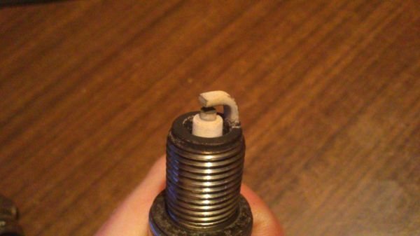 - Долгий пробег с детонацией, некачественное топливо. При этом электрод полностью изнашивается или отламывается, изоляция разрушается. Все это «богатство» может попасть в разные области двигателя и серьезно повредить его.
