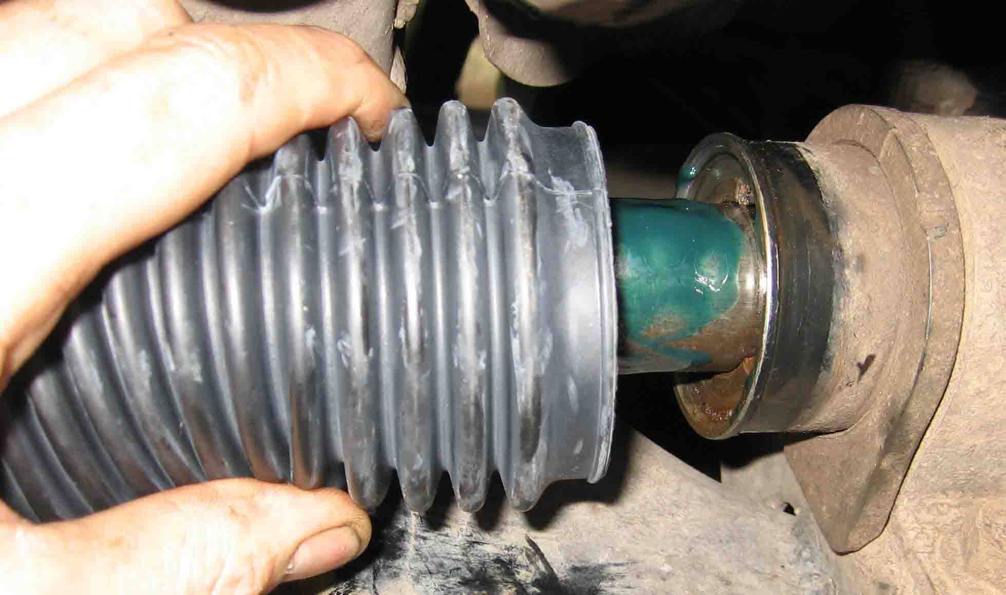 - Сдвинув гофру вверх по валу, можно увидеть наличие смазки.