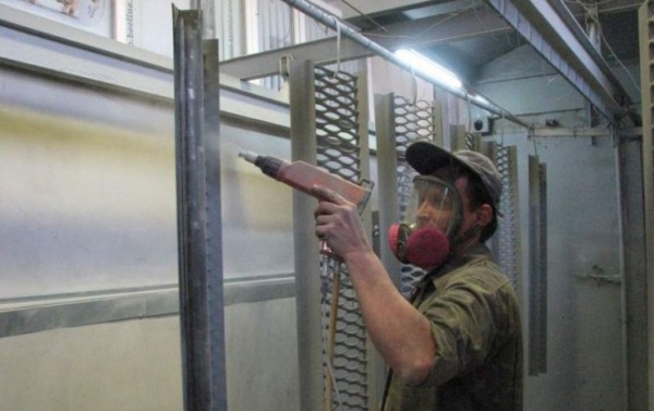 - Участка подготовки изделий: чтобы полимерное покрытие было нанесено правильно и равномерно, металлическое изделие сначала тщательно очищается от пыли, ржавчины, грязи. Целесообразно использовать эффективную пескоструйную обработку и фосфатирование. Обязательный этап – обезжиривание металлической поверхности.