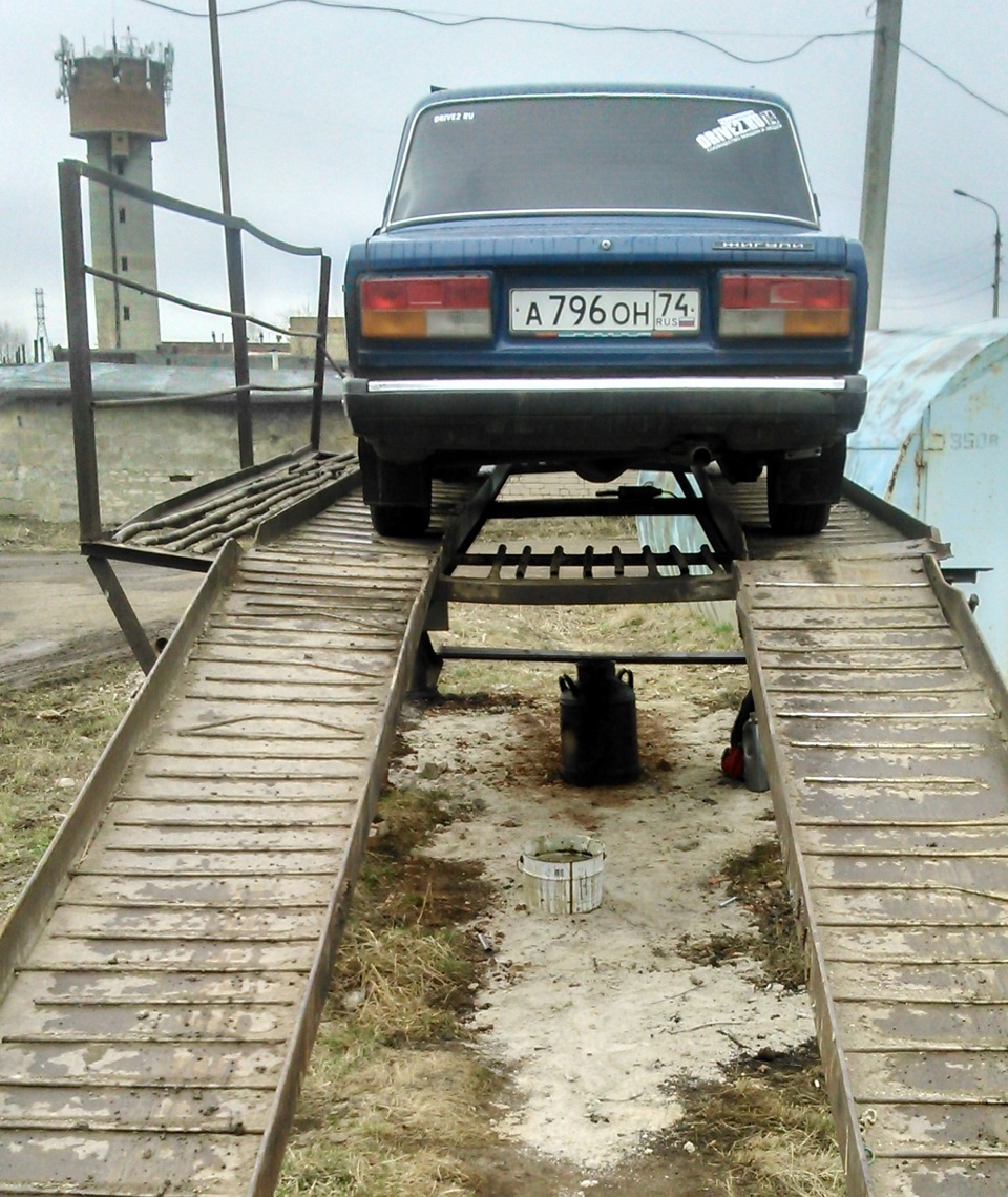 - автомобиль ставится на смотровую яму, эстакаду или подъёмник;