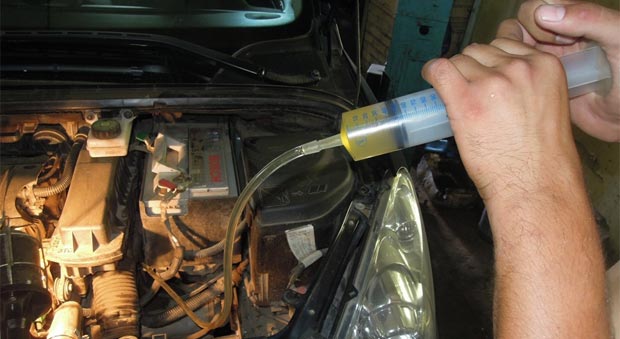 Новую смазку рекомендуется наливать очень аккуратно и постепенно. Вещество проникает и распределяется по каналам, поэтому и нужно залить, а потом подождать, пока состав будет равномерно распределен в системе.